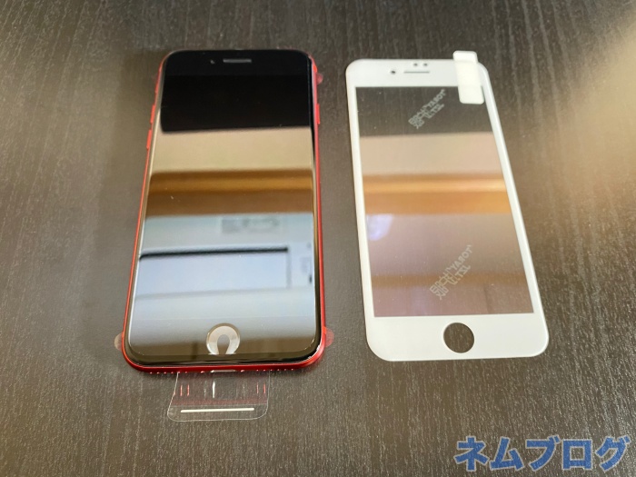 ということで、無理やりディスプレイ面を白くするために、白フチのガラスフィルムを貼りました。
